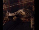 Yoshi the kitten was laying on his back on his owner’s lap when he starting kicking around and going crazy. Unfortunately for Yoshi, he hadn’t quite gained control of his limbs yet and ended up kicking himself in the face several times. Fortunately for us, his owner had the camera on Yoshi for the entire time. Credit: djscottyj1234.