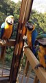 Des perroquets affamés s'incrustent pour un casse-croute!