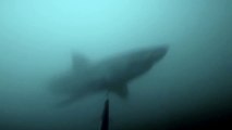 Un requin blanc attaque un zodiac
