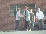 Just a moment before Bloom threw a punch at Bieber which missed. Bloom can be seen furiously pointing at him while others break them apart. Bieber can be heard saying "What's up b****, what's up?". Bloom then comes over again and appears to be shouting at Bieber, who is surrounded by his entourage.