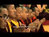Buddhist monks reading holy scriptures at Mindrolling Monastery