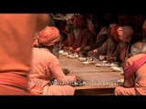 Indian holy saints gathered for Samashti Bhandara at Juna Akhada during Maha Shivratri.