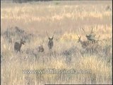 In the terai region of India, the exclusive terai saravannas and marshy tall grasslands favour these animals. Although the hard ground sub species has adapted itself to the hard ground conditions of central India, it steill reveals its evolutionary prefrences for swamps and water. The deer in habits grassy areas in moist pockets and never moves far from water. Tall grass cover is extremely essential for its successful bredding.