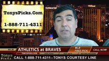 The Oakland Athletics will continue an interleague weekend series against the Atlanta Braves in a Major League Baseball game wagering odds pick prediction slated for Saturday night.