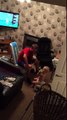 Helpful baby gives dad weightlifting tips!
