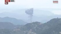 Israel shot down a Syrian fighter jet over the Golan Heights, the army said, indicating that the plane had crossed the ceasefire line into the Israeli-occupied sector. Duration: 00:29