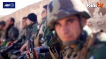 Shells land on peshmerga position on a hill in the battleground Syrian border town of Kobane just days after the Kurdish forces arrived to reinforce beleaguered fighters against the Islamic State group. Duration: 00:34