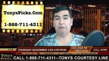 College Football Free Thursday Night Picks Betting Odds Point Spread Predictions 11-13-2014