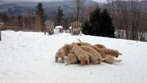 Golden Retriever Mother Playing With Her 15 Pups - Too Cute!