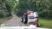 Crazy guy carrying barrels on a couch with a tractor... Why are cops arresting him??? ahaha