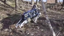 The four-legged robot uses an electric motor to power hydraulic actuators giving it animal-like mobility.