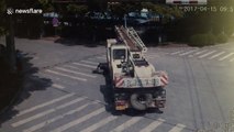 Mother and child narrowly escape being run over by crane
