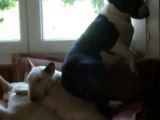 Hilarious dog trying to catch something on a table.... Dumb animal!