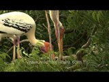 A pair of Painted storks at Neem tree in Gujarat