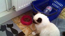 It seems this Birman Cat doesn't like Its food / Heilige Birma Katze ist mit ihrem Essen unzufrieden