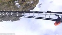 Video footage uploaded to facebook shows the terrifying moment a bridge collapses and EXPLODES during floods in the UK.