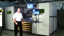 The second machine has manually loaded trays with robotics handling all part movement from the tray to the laser and back.