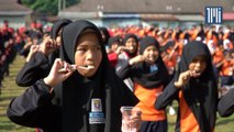 Students and teachers brush teeth while dancing to Doraemon theme song