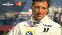 British racecar driver Justin Law takes the Jaguar XJR12D up the hillclimb in the wet at Goodwood Festival of Speed.