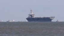 A crewman on an aircraft carrier stands too close to a jet engine and gets sucked inside, but miraculously lives to tell about it!\r