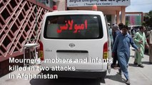 Angry mourners have attended the funerals of the more than 30 Afghan villagers who were killed by air raids targeting the Taliban in Kunduz. Most of the dead were women and children.