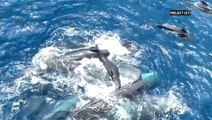 Groundbreaking video shows sperm whales helping mother give birth before teaching newborn to swim