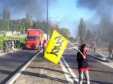 Besançon : les policiers éteignent le feu de barricade des Gilets Jaunes à Micropolis