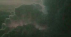 Footage of a jumbo jet being struck by a bolt of lightning over Russia.