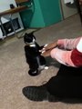 Un chat joue à main dessus-dessous