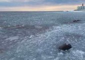 John Buvala used his drone to help his friend find his shack, which had been blown away by heavy winds into frozen Lake Superior by Long Island, Wisconsin.