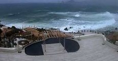 Powerful winds and driving rains pounded Cabo San Lucas on the southern tip of Mexico’s Baja California peninsula, as Tropical Storm Lidia inched toward the coast on Thursday, August 31.