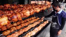 3,500 Rotating roast chicken sold per week Bangkok street food Thailand - Asian street food