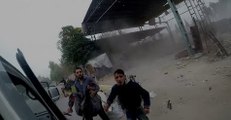 This footage was shared by the Syrian Civil Defense in Damascus province and shows rescue workers rushing to the scene of strikes in the town of Mesraba. Credit: Syrian Civil Defense Damascus via Storyful