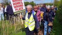 Protect Wellington demonstrators set out on a protest walk using public footpaths across farmland where developers want to build 250 houses.