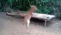 The clip, captured in Shangrao City in the southwestern Jiangxi Province on March 26, shows a 1-year-old pig doing a handstand to walk on its two front legs.