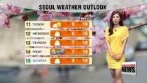 Daily highs in Seoul and Chuncheon will get up to 26 degrees Celsius, Gyeongju and Daegu will enjoy cool highs at 23 and 25 degrees respectively.