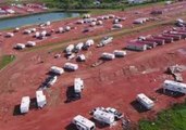 This aerial footage shows the damage in the RV park on Tuesday. Credit: Bakken Rotors via Storyful