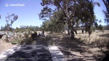 A driver luckily escaped death after a tree fell onto his moving car in northern China.
