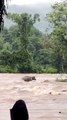 Severe flooding in Central Texas on October 16 caused an entire house to float down an overflowing river, as captured by a local resident.