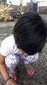 We love this video! Brother and sister playing outside and the girl is hitting a ball with a tiny stick......get her to the Cricket club and playing cricket!