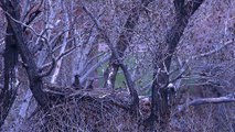 FULTON, ILLINOIS — Three bald eagles, two males and one female, have been spotted living in one nest while raising three young eaglets in a tree on the Mississippi River in Illinois.