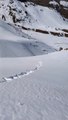 A dog whose leg's got covered in snowballs was helped out by his brother who chewed at the clumps of snow at their home in Sweden.