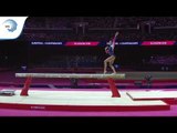 Phoebe JAKUBCZYK (GBR) scored 12.700 (4.8) on beam in the junior qualification round of Glasgow 2018.