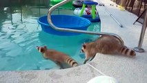 Willie the pet Raccoon loved swimming in his owner's pool. Adorably, he floated in the water and used his tiny paws to paddle around the pool.