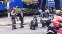 Footage shows bomb disposal experts at the Sala Daeng BTS station in the centre of the Thai capital. The area is next to bustling tourist destination Patpong red-light district on Silom Road.