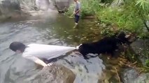 Ce chien est un peu trop protecteur avec son maitre : baignade interdite