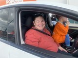 Shocking moment woman damages her own vehicle while attempting to cut the drive-thru line at Popeyes.