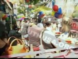 Captured on the southbound I-15 towards the eastbound I-10, the footage shows the heavy goods vehicles take the exit.