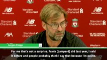 Liverpool boss Jurgen Klopp believes Frank Lampard is doing a fantastic job at Chelsea since taking over at the start of the season.