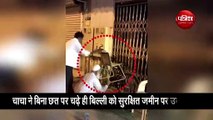 A old man saves cat who trapped on roof